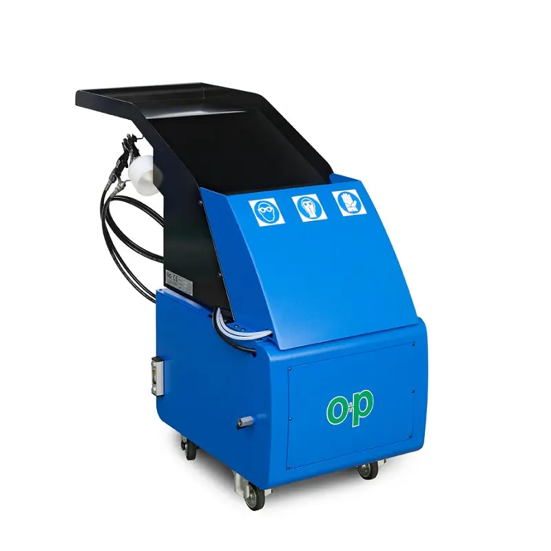 Speedy Clean is an efficient and inexpensive system for the internal cleaning of flexible hoses. Cleaning operations are carried out by means of a spray gun, which introduces a specific solvent into the hose. The detergent action of the solvent combines with the pressure that develops inside the component to eliminate any deposits possibly accumulated therein. Speedy Clean is equipped with wheels to easily move it around your workshop and it is also provided with a connector for compressed air.