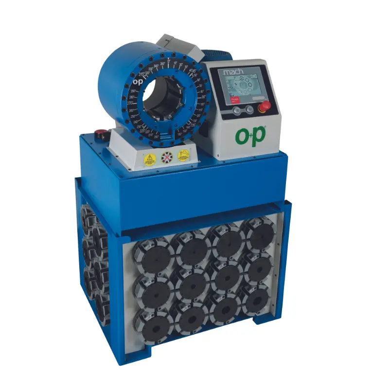 The crimper Tubomatic H130 ES is ideal for crimping hydraulic hoses up to 1" 1/4 six spirals and up to 2" four spirals.