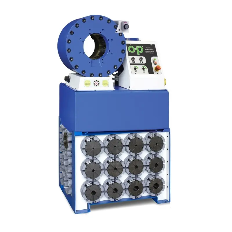 The crimper Tubomatic H144 EL is ideal for crimping hydraulic hoses up to 2"1/2 six spirals and industrial hoses up to 4".