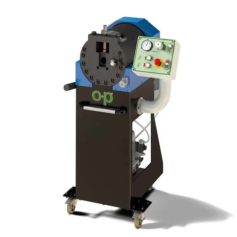 The machine, which requires only one tool change to carry out the flaring operations, uses a cold orbital forming process to create a flat and smooth sealing surface at 90° and 37° with a suitable rugosity for the O-Ring seal.
